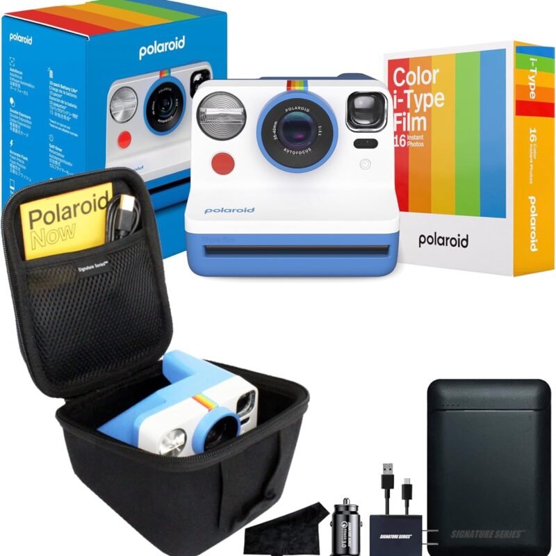 Product Description Polaroid Now In The Box: Polaroid Now Gen 2 Instant Camera 16 Polaroid Color Film Photos (6009) Polaroid Now Charging Cable Signature Series Hard Case Signature Series Microfiber Cloth Signature Series Power Bank Signature Series Wall and Car Plug Polaroid Now Generation 2 Instant Camera Capture and keep…