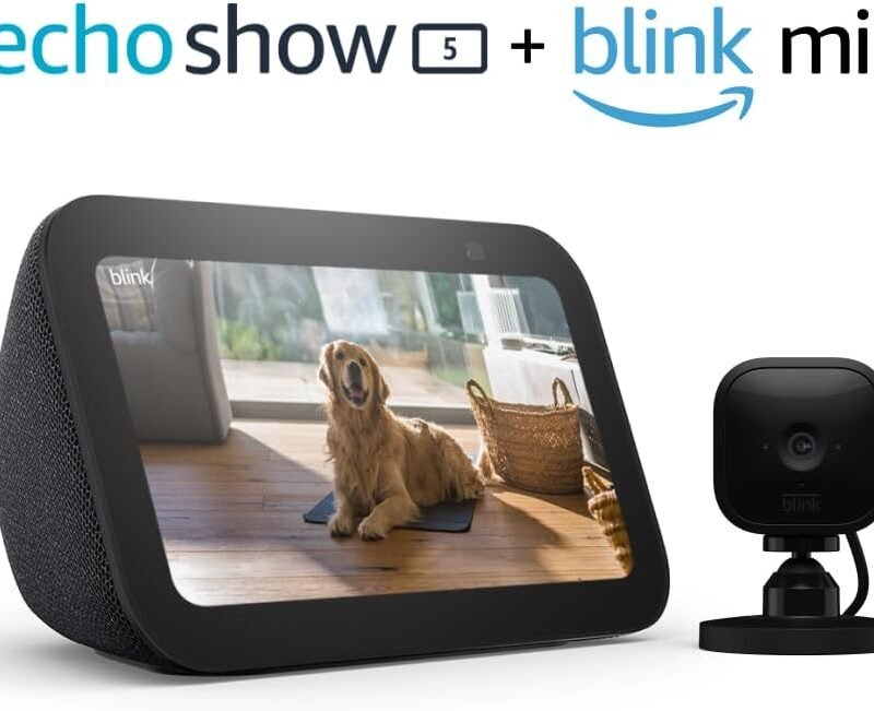 This bundle contains Echo Show 5 (3rd Gen) and Blink Mini.ALEXA CAN SHOW YOU MORE – Set alarms and timers, sleep soundly with a relaxing playlist, start your morning with a smart home routine, see your calendar or weather clearly – all with your voice.SMALL SIZE, BIGGER SOUND – Stream…