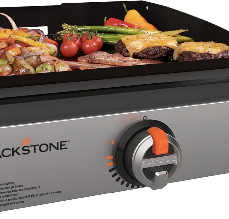 This 17” Blackstone griddle allows you to cook anytime and anywhere. Its compact, portable design makes it easy to bring with you to the park, the beach, on a camping trip, or wherever else you end up adventuring. 12,500 BTUs run through an H-style burner to quickly and evenly heat…