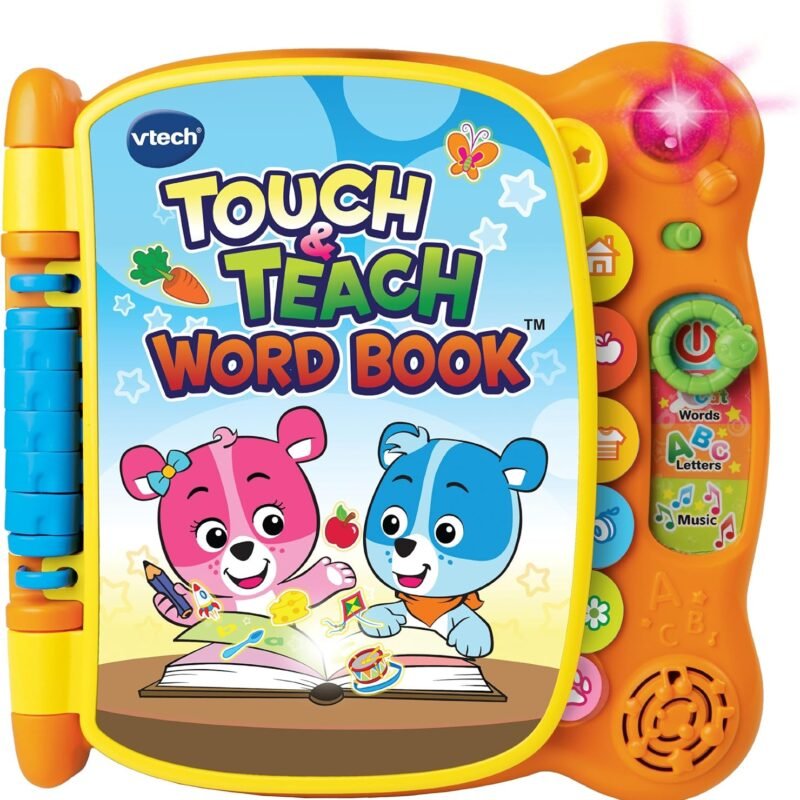Discover the magic of words with the touch & teach word book by VTech. Cody the smart Cub and Cora the smart Cub teach letters and more than 100 words in four different activities. Twelve interactive pages come to life with the touch of a finger. Make reading an even…