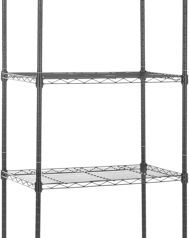 An Amazon Brand 5 shelf wire rack offers handy storage space and easy access to tools and suppliesDurable steel construction with a Black finish; each shelf holds up to 200 pounds, evenly distributed; 1000 pound total weight capacityAdjustable shelf height in 1-inch increments for easy customizing; 4 leveling feet for…