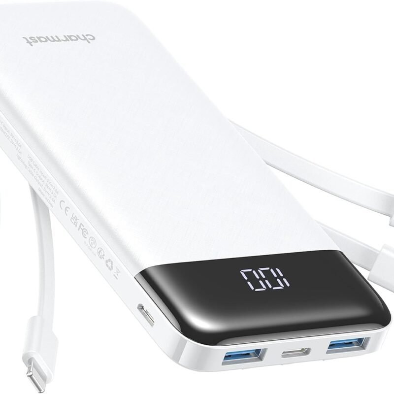 Product Description Charmast Slim 10400mAh 6 Outputs Portable Charger built in 4 Cables (3 output cable + recharging cable) Powerful portable charger is widely compatible with iPhone, iPad, Samsung, Google Pixel, LG, Motorola, HTC, OnePlus, Noval, Blackberry, Huawei, Xiaomi, Oppo, other phones and tablets… Portable Charger built in 4 cables:…