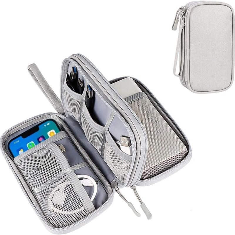 [Large capacity]-The Size of the cable storage travel case: 8.27″ x 4.92″ x 2.36″. Double layers with 3 large compartments inside 1 large interior compartment, 2 large elastic compartments and 5 small visual mesh pockets could hold your different tech gadgets like cables, cords, charger, earphone, USB drives and SD…