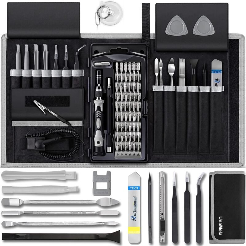 From the brand Precision Screwdriver Set Computer Repair Kit Laptop Repair Kit Professional Configuration: This set includes a precision screwdriver handle, 10 bits, 3 spudgers, 6 opening picks, magnetizer, tweezers, brush, and 16 spare screws. Ideal for electronics maintenance: unscrewing, prying, part replacement, and cleaningWide Application: PH000 for Switch, PH00…