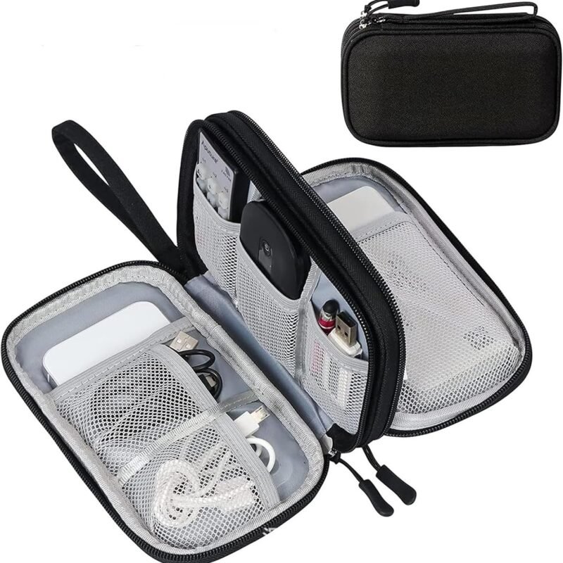 Cable Organiser Bag, Double-Layer Electronics Accessories Cable Organisers,Universal Carry Travel Cables Gadget Bag for Power Bank, USB Drive, Charger Hard Disk 【Quality Material】This travel electronic organiser is made of high quality oxford material,wear-resistant and shockproof. The mesh pockets are much sturdy and will not break even after being filled up,…