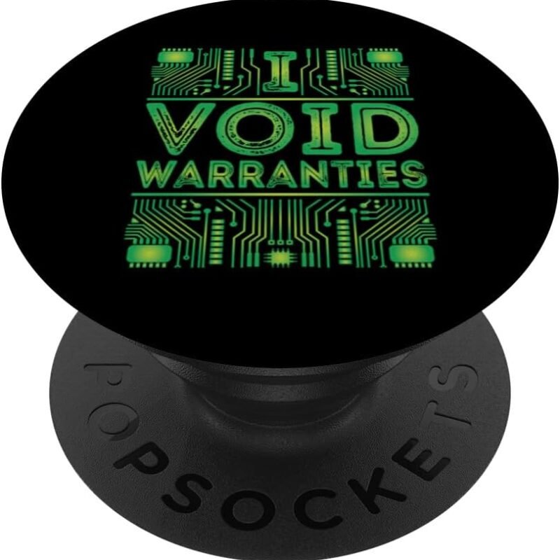 Unleash your inner tech rebel with this “I Void Warranties” graphic design, perfect for gadget enthusiasts and those who love to defy the norm. This design showcases your passion for technology and innovation and features a bold, futuristic circuit board pattern. The striking green text stands out against a dark…