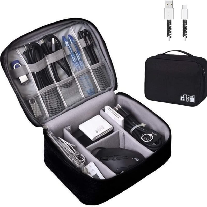Electronics Organizer Case Bag, Waterproof Travel Electronic Accessories Case Portable Storage Bag/Universal Cable Organizer Cable Cord Bag for Cable, Charger, Phone, USB, Flash Drive, Power Bank Main Features: Product Name: Electronics Organizer Dimension:7.48 x 4.72 x 1.4 inch Material:durable and water-repellent nylon,Well padded semi-flexible interior, excellent protection for your gadgets…