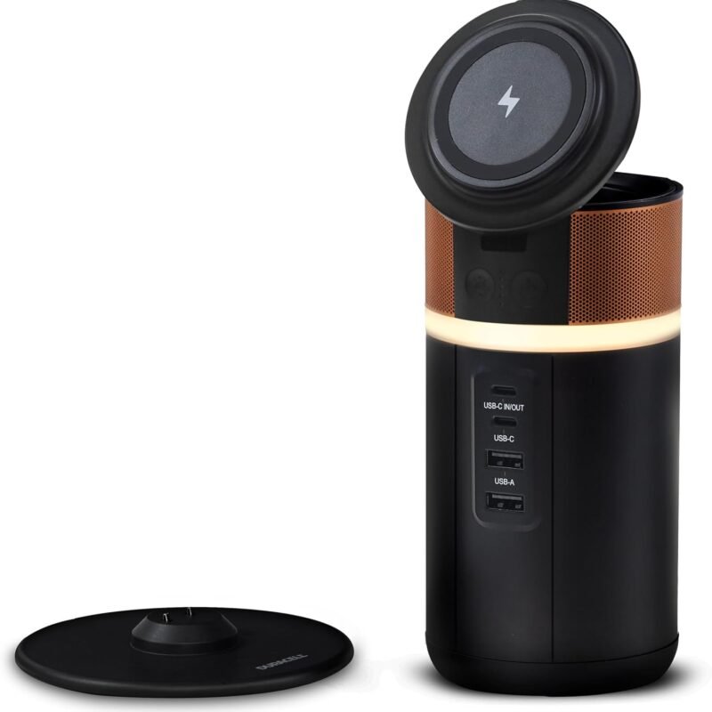 Product Description Power phones, tablets, laptops—any of the small devices you need—for work and for life. Lightweight and compact, the M150 features a cord storage unit, a tiltable device holder that has wireless phone charging, a dimmable ring light, a charging dock, and packs in 150 watts of power. You…