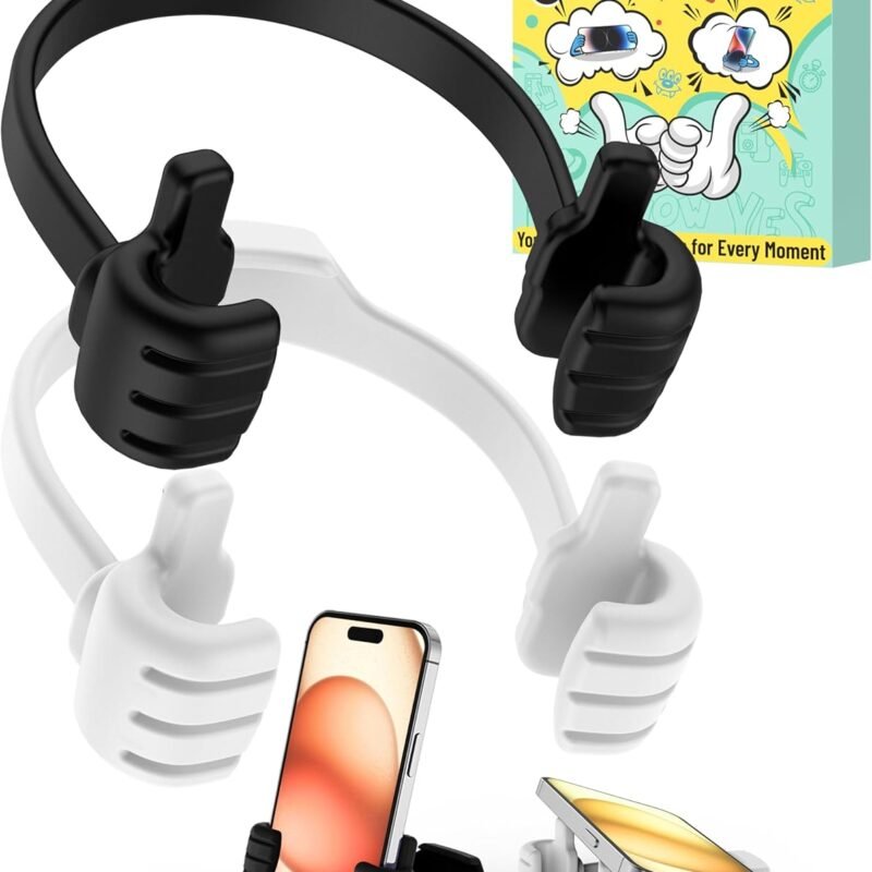 Product Description Adjustable Viewing Angle for Comfort: Easily adjust the viewing angle on this cute thumbs-up cell phone holder by sliding the hands up and down for a perfect view without losing stability. Perfect for FaceTime, watching videos, or gaming, this cell phone stand accommodates a wide range of devices…
