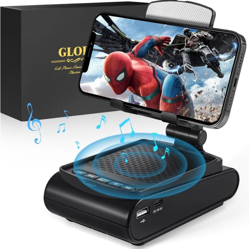 Product Description GLOPUS Phone Stand with Bluetooth Speaker – Best Gifts for Men Women – Gadget Distinguished by minimalist design, exquisite workmanship and adjustable angle structure, It accommodates your device with a solid support wherever you go, such as office, living room, kitchen, bedroom, etc. It’s the great tech gifts…