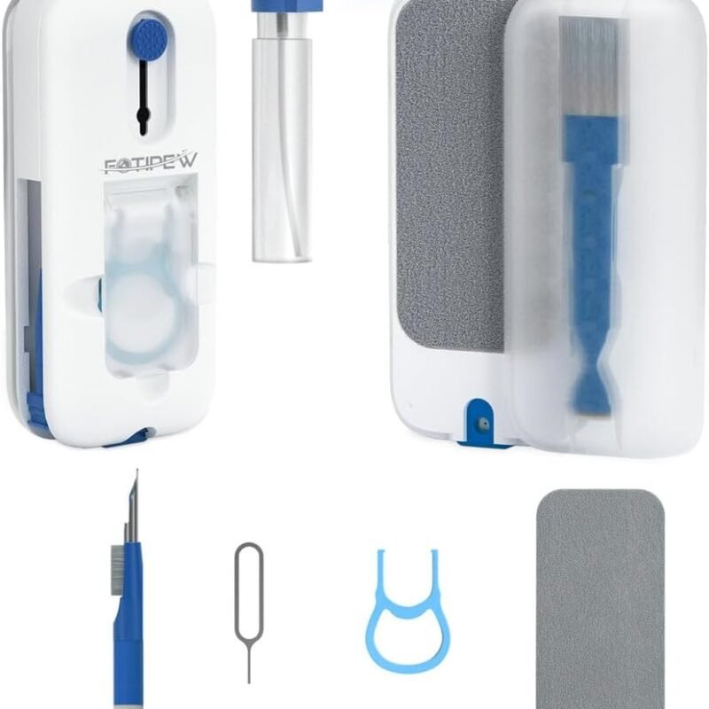 Product Description 12 IN 1 CLEANING KIT- It is equipped with 1 keyboard cleaning brush,2 pieces of screen cleaning and polishing cloth,1 keyboard assembler, 1 mobile phone card pin, 1 earphone cleaning brush,1 dirt cleaning tip, 1 earphone cleaning stick, 1 camera brush, 1 3ml spray cleaning bottle(no contain liquid),…
