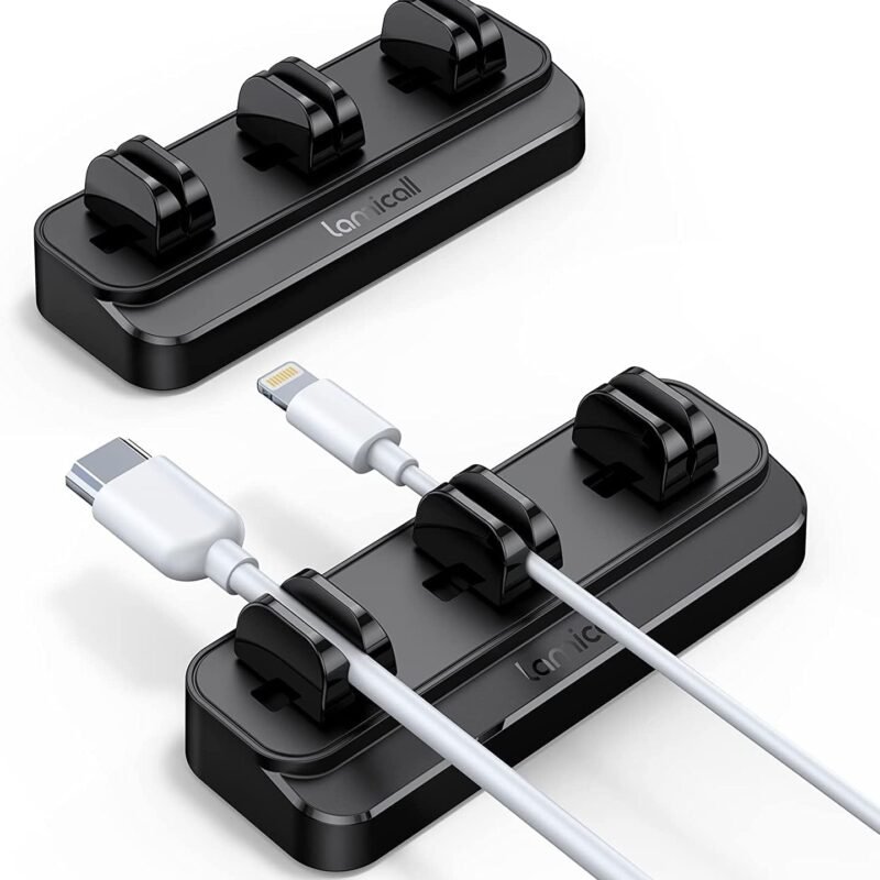 Product Description 【Adjustable Spring Clip Design】Adjustable design meets your different diameter cables management. The desk cord organizer can be applied to iPhone lightning cables, USB charging cables, HDMI network cables, audio cables, and wire earphones, computer cables. Wide compatible wire diameter of desk cord management is 2.5-8mm (0.1-0.32 inch).【Sturdy Sticky…