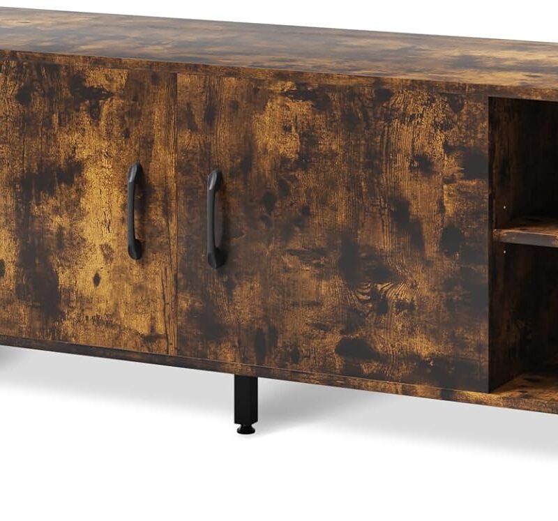 Novilla TV cabinet A functional media console cabinet ①High-end material: High-density PB board, corner PVC edge sealing, waterproof, wear-resistant, and durable. ②Metal legs: Not easy to rust, to peel off and not easy to corrode. ③Open shelves: You can adjust the shelves to get the perfect space, and use the…