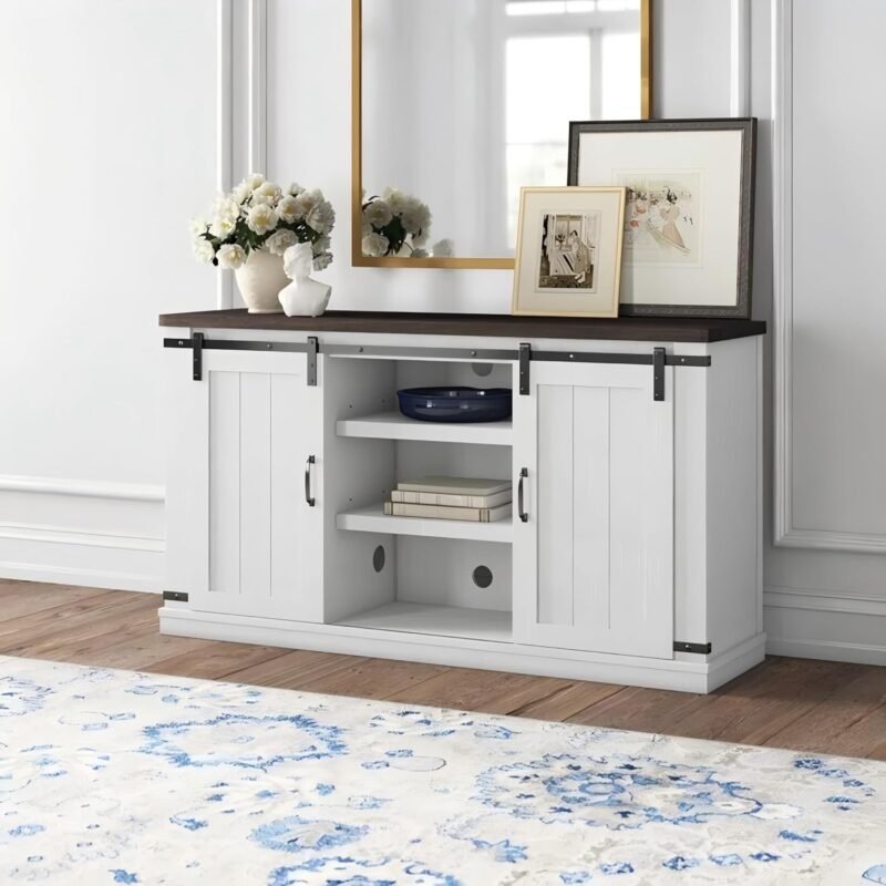Product Description The video showcases the product in use.The video guides you through product setup.The video compares multiple products.The video shows the product being unpacked. Barn Door Design Farmhouse TV Stand for 75 Inches TVs Double barn door design with exposed metal hinges, blends cottage, country, and farmhouse with a…