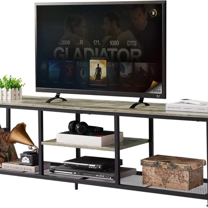 VECELO TV Stand featuring chic vintage style and practical structure design, which fits anywhere in your home— Constructed of quality particleboard shelves and industrial mesh shelves, which ensures a long use span.— Featuring a spacious tabletop and 2 tiers of open storage shelves for anything you like, making your room…