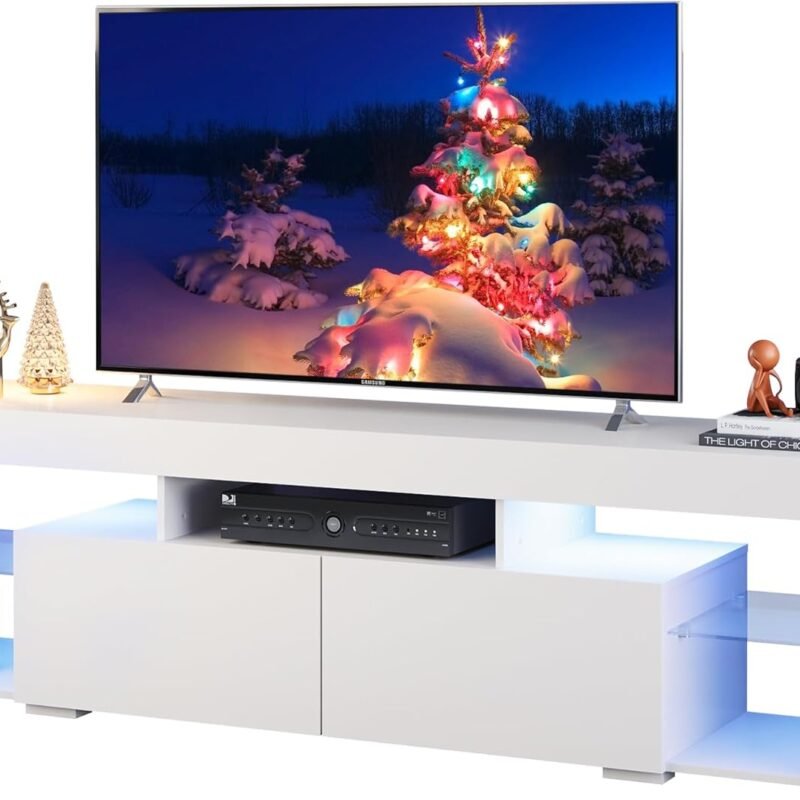 Product Description 1 Spacious Storage 2 7 Open Shelves 3 Easy Clean Panel 📺 Modern LED TV Stand: Enhance your living space with this 63″W x 13.8″D x 17.6″H modern TV stand. The sleek finish and integrated cool LED lights create a contemporary and minimalist look, perfect for TVs up…
