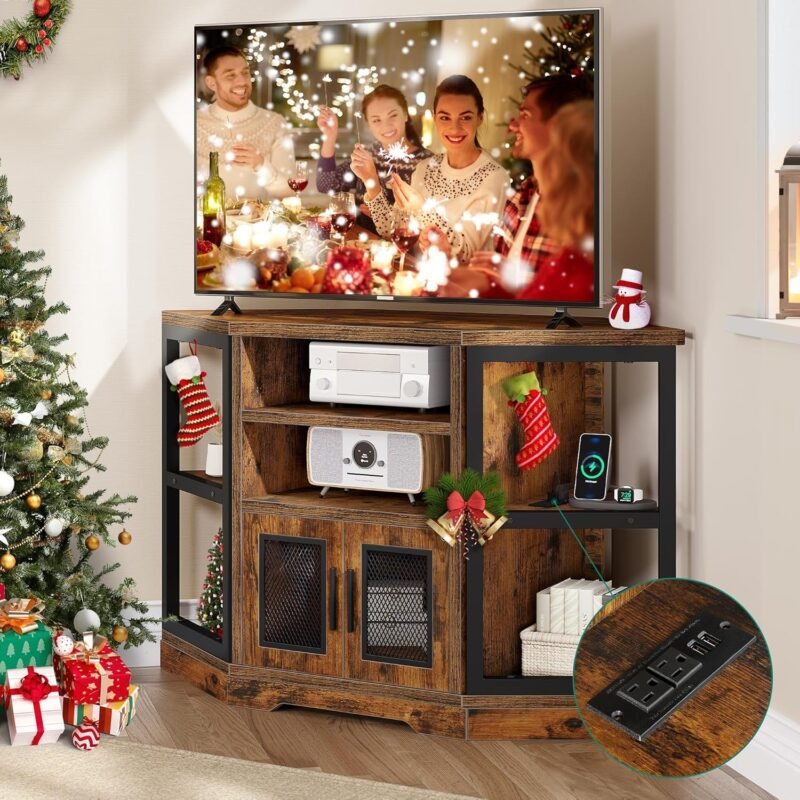 Product Description Key Feature Rustproof Metal Handle Professional rustproof and polishing processes make the handle smooth and better durable Quality Mesh Door This TV stand features two mesh doors designed with soft closing hinges and magnetic catch , preventing fast, rough closures to protect your doors 2 Tiers Display Design…