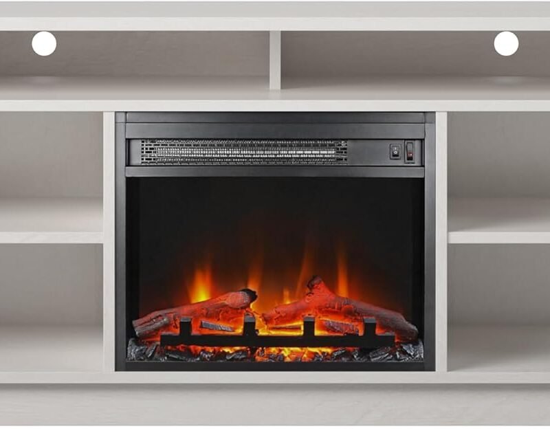 Dial in your perfect level of cozy, no matter the weather, with a 65″ TV Stand with Electric Fireplace. The 18″ electric fireplace insert is a great way to keep your room (up to 400 sq. ft.) warm or to create the perfect ambiance for the evening. The Fireplace and…