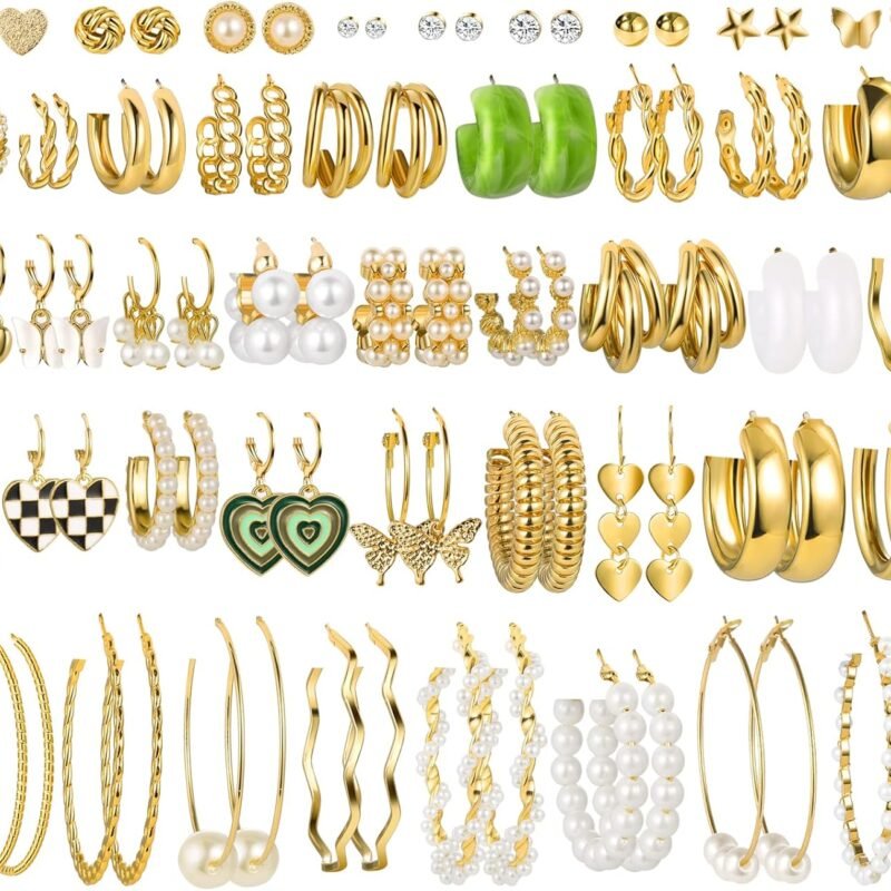 Product Description 44 Pairs Gold Hoop Earrings Set for Women Multipack The video showcases the product in use.The video guides you through product setup.The video compares multiple products.The video shows the product being unpacked. Various Gold Hoop Earrings for Women Multipack Three Hoop Earrings Heart Dangle Earrings Pearl Hoop Earrings…