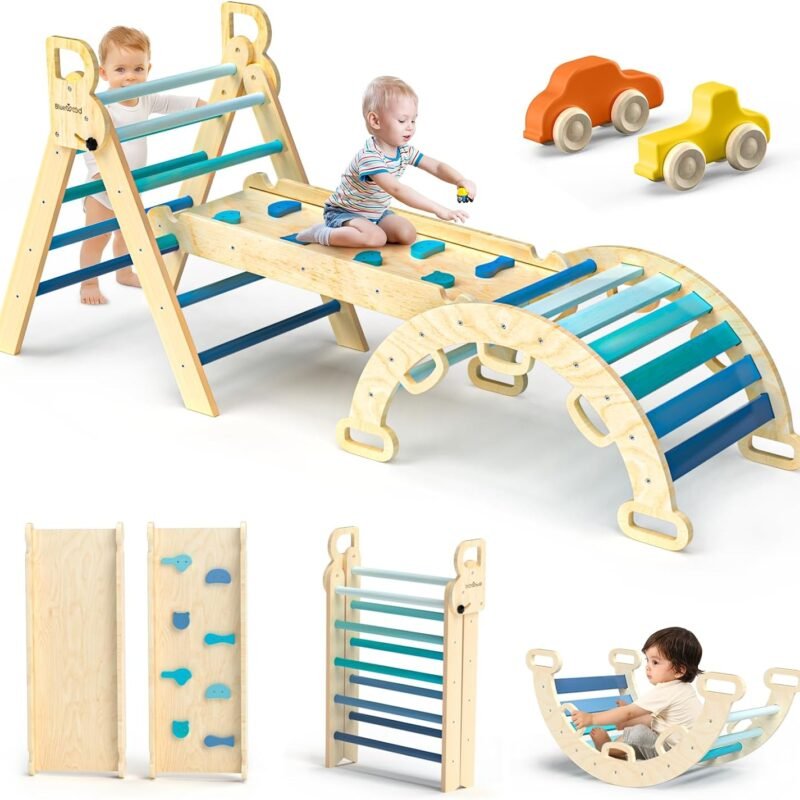 From the brand BlueWood Pikler Triangle Set BlueWood Indoor Pikler Toys 2024 Exclusive Upgrade: The Arch Ladder of BlueWood Pikler Climbing Toys features a unique design, combining boards with sticks for versatile play. It functions as both an arch ladder and a comfortable rocking chair.7 IN 1 Play Mode: 2024…