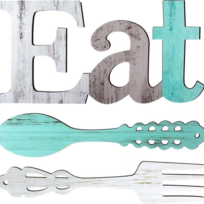 Product Description Artistic appearance: this set of wooden eat sign consists of the word of eat, a spoon and fork; The colors look harmonious and fresh, with this rustic style kitchen wall decor, the togetherness of your kitchen can be shown effectivelySuitable size: the size of the wooden eat sign…
