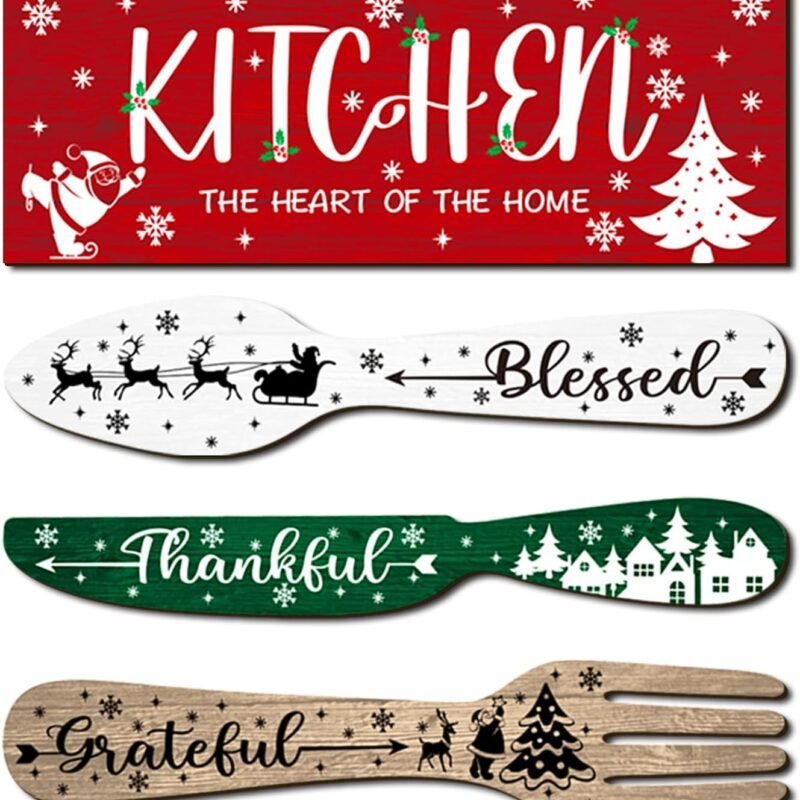 Features: Christmas theme design: You will be provided with 4 pieces of kitchen decorations with classic colors, in the shape of block, spoon, knife and fork, able to meet your farmhouse and modern home decoration needs, or you can share them with others Applicable Scenes: Our farmhouse kitchen decor is…