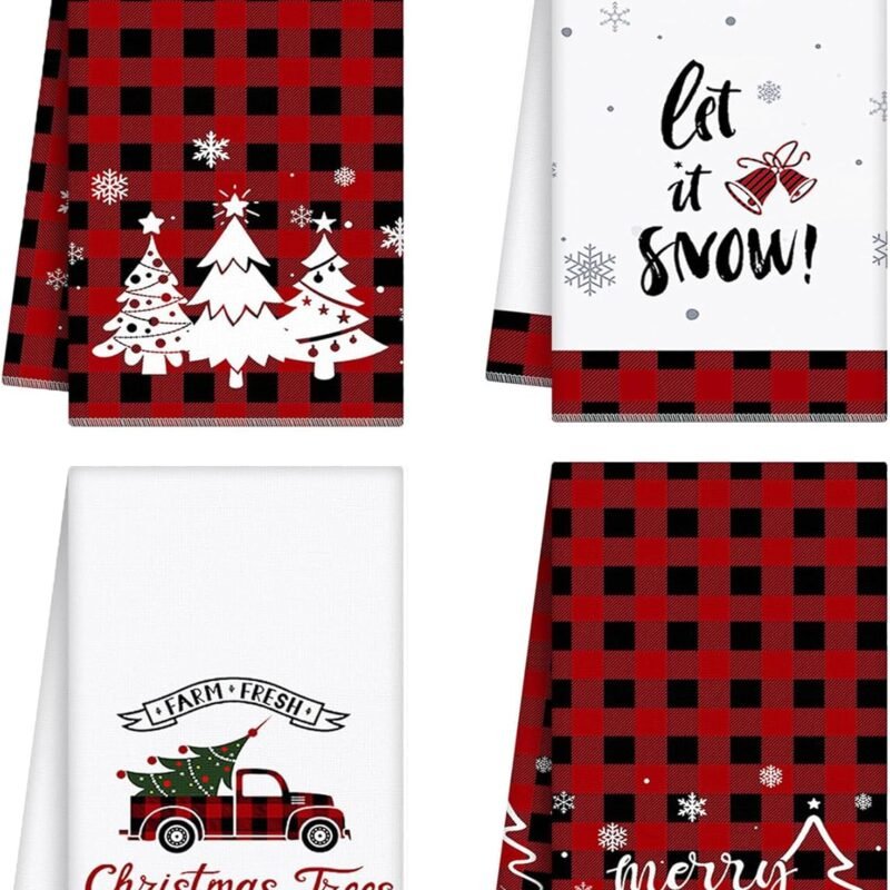 Product Description 4 Pcs Xmas Trees Truck Hand Towels Winter Holiday Buffalo Plaid Christmas Dish Towels the Christmas kitchen towels are designed with Christmas tree, snowflake, truck and so on Christmas elements, can add flair to your kitchen and creat warm Christmas atmosphere for your home Christmas Kitchen Towels for…