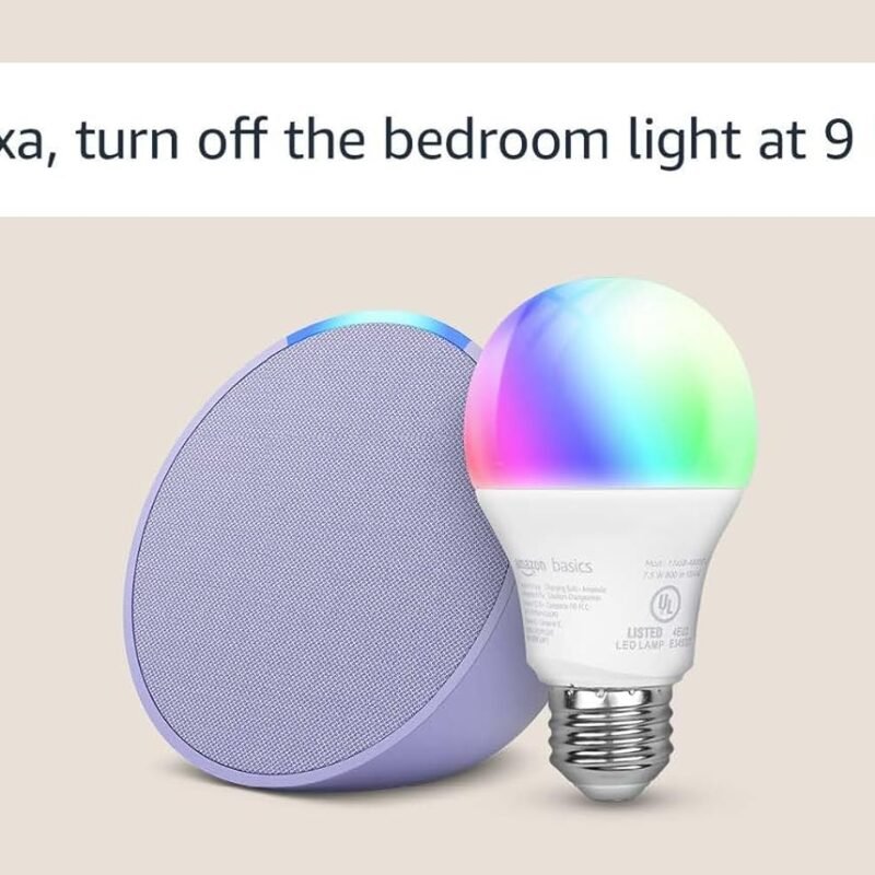 This bundle includes an Echo Pop in Lavender Bloom and an Amazon Basics Smart Color Bulb.Amazon Basics smart light bulbs offer voice control through Alexa and app control via the Alexa app. You can set automatic schedules, such as turning lights on at sunset and off at sunrise. These bulbs…