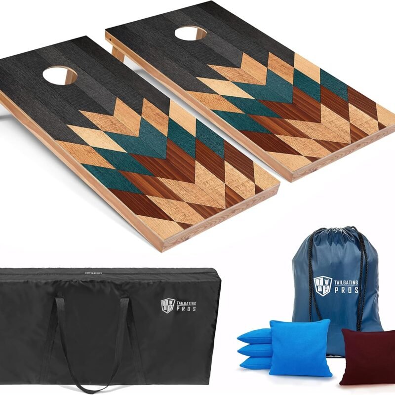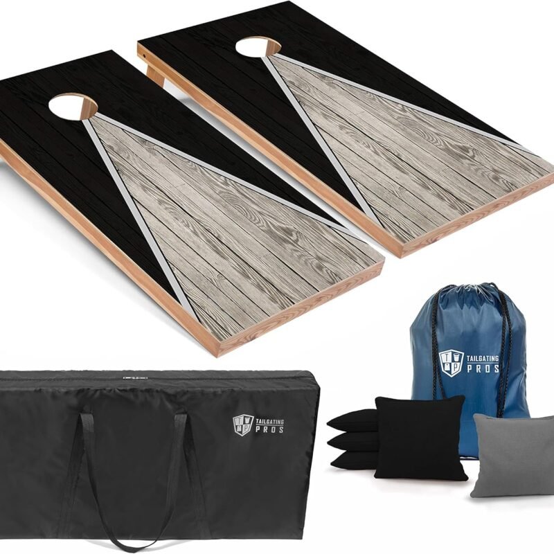 Product Description Lightweight Regulation Cornhole Boards Printed 1/2″ Sanded Plywood Top We Take the Extra Steps to Ensure a Quality Playing Top. Our sets are Fitted with a Sanded 1/2″ Plywood Playing Surface to Allow the least amount of bounce. Folding Legs Each Set is Equipped with Folding Legs that…