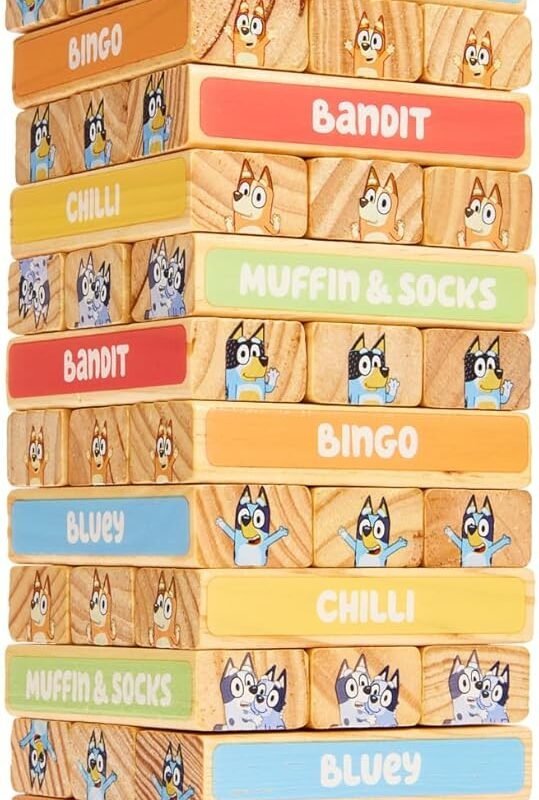 Looking for a fun game that promises endless thrills? Check out the Bluey Tower Adventure! With 54 colorful wooden blocks featuring Bluey and Friends, this stackable set is perfect for non-stop playtime with family and friends. Build focus and strategic thinking while having a blast! Every game becomes a battle…