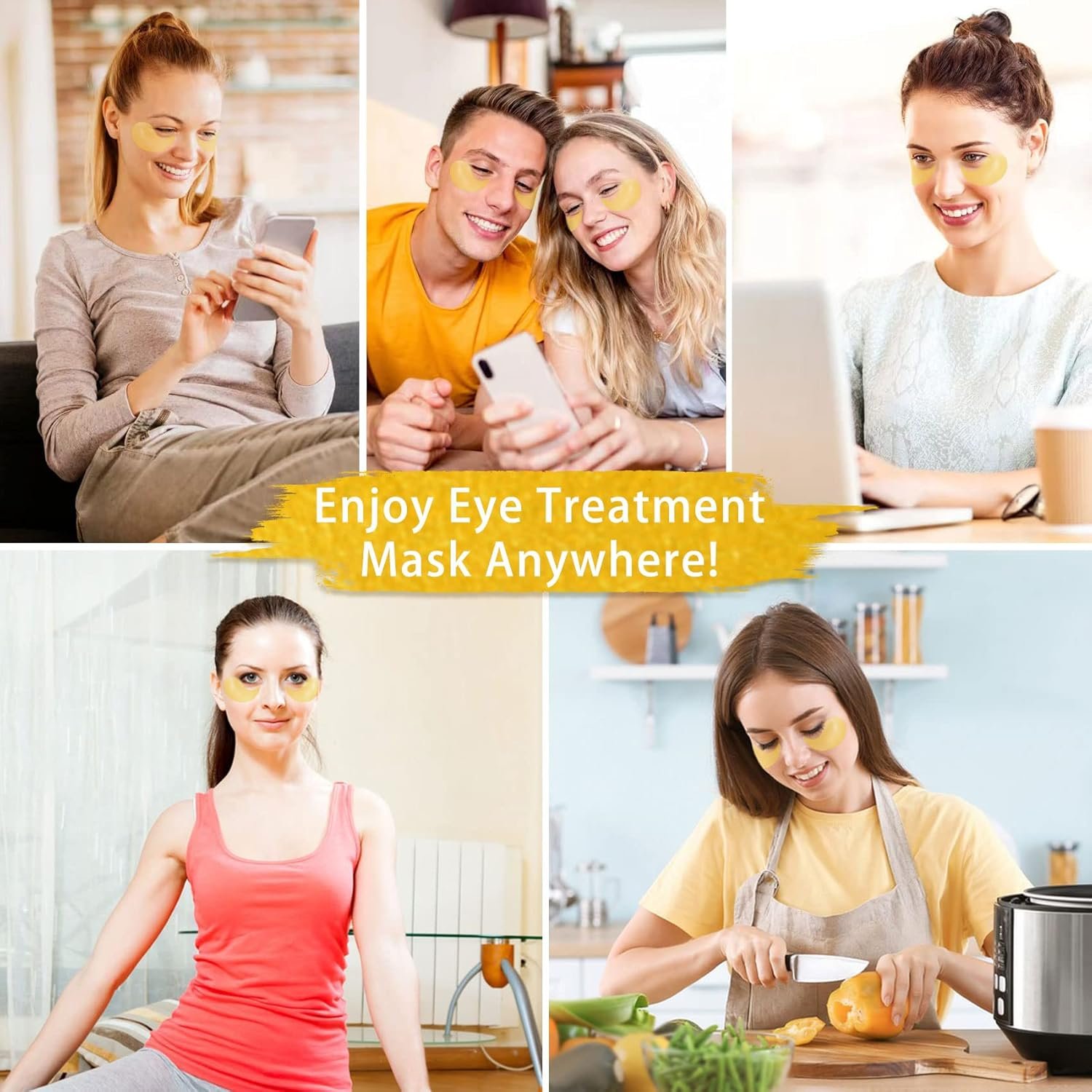 PREMIUM INGREDIENTS: Our eye mask is infused with a mixture of natural plant essence, 24k gold and multiple hyaluronic acids, it deeply repairs eye skin and promotes blood circulation. It is safe and has no side effects.