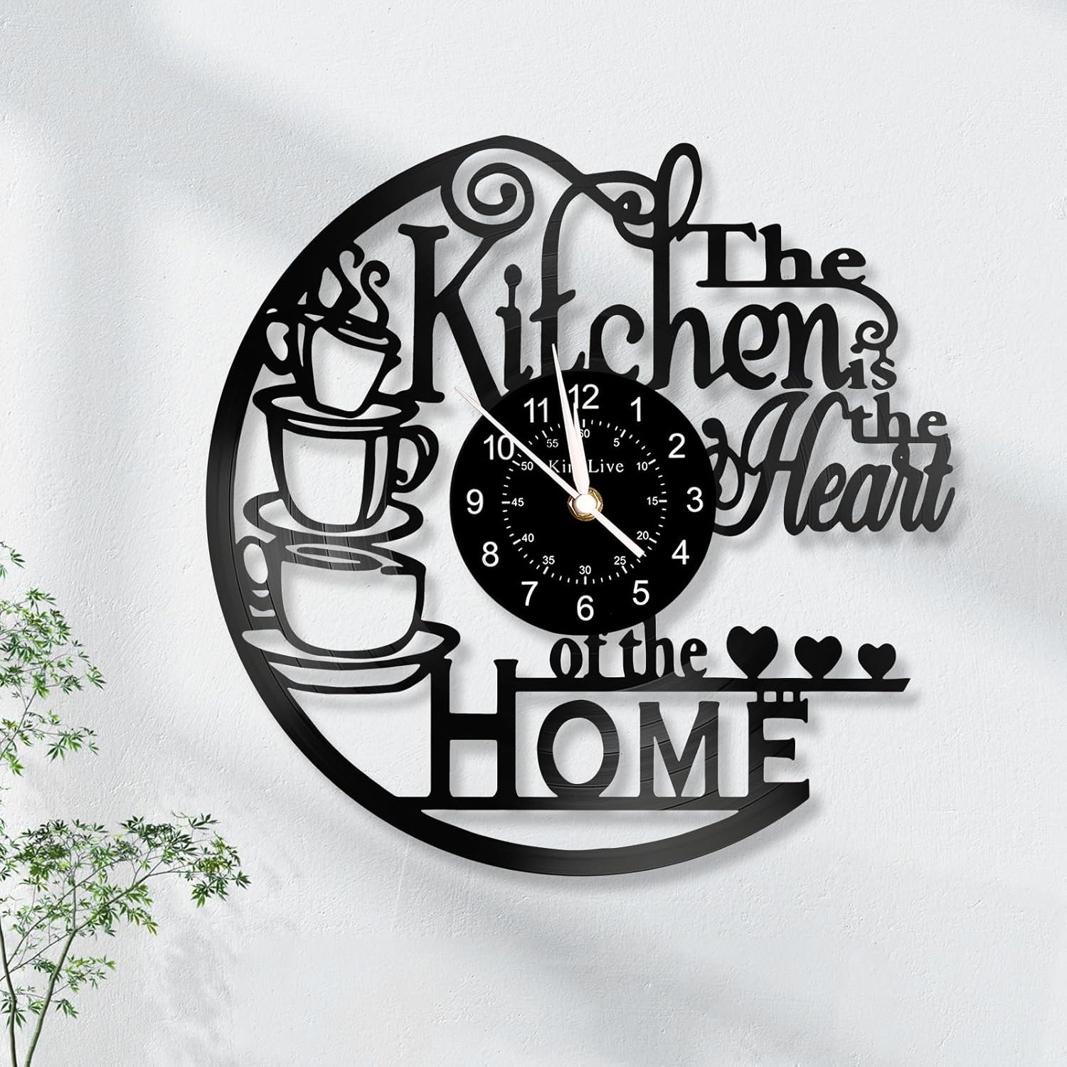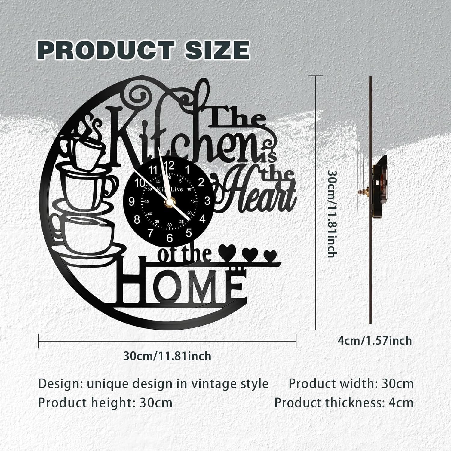 12 Inch Kitchen Vinyl Record Wall Clock, Kitchen Heat Home Theme Wall Clock, Coffee Bar Decor, Coffee Wall Decor for Kitchen Office Living Room, for Women Wives, Black