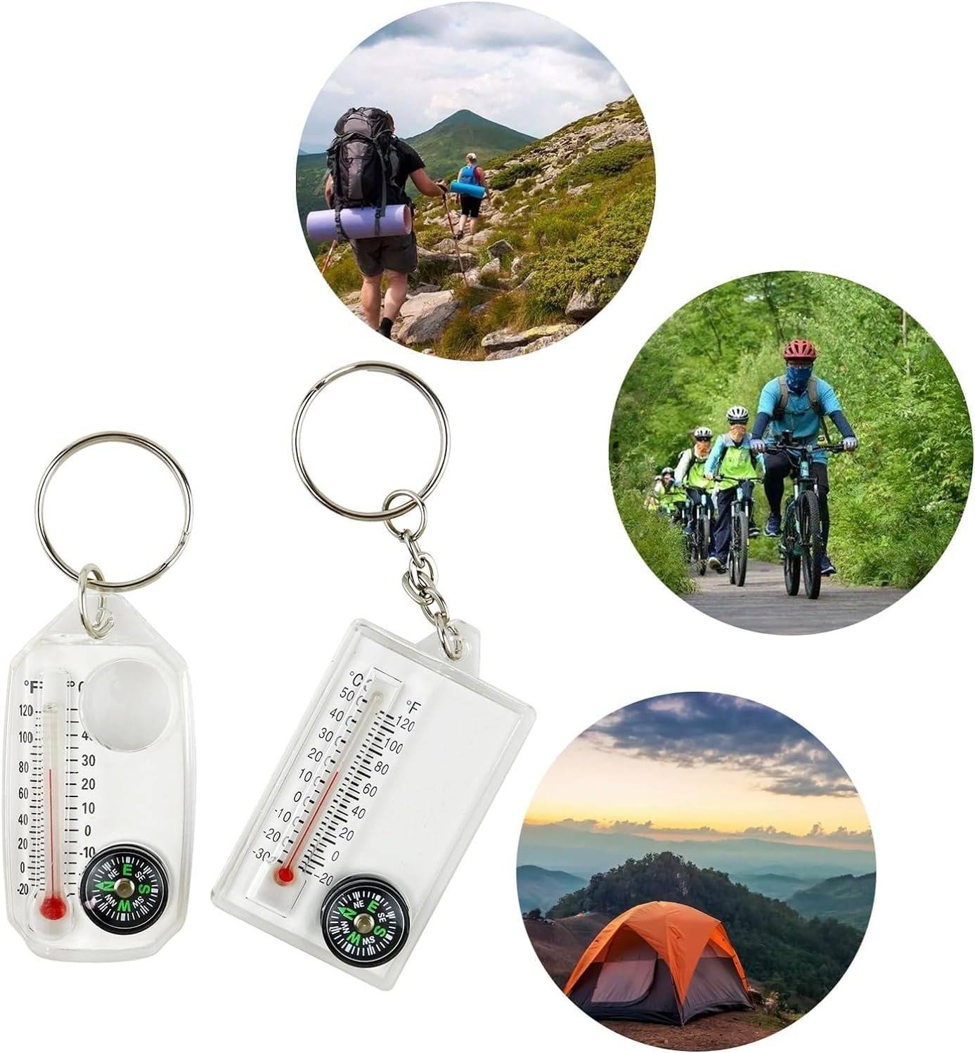 1Pc White Small Compasses Thermometer Keychain,Gear for Camping Hiking Backpacking Survival Key Hook Camping Compasses Electronics and Gadgets,Mini Pocket Sized Keyring Compasses