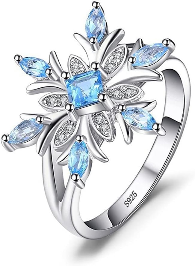 1X Women Jewellery Ring Silver Christmas Snowflake Blue Crystal Wedding Party Thumb Knuckle Ring Love Gift Size 8 Durable and Useful Deft and Fashion