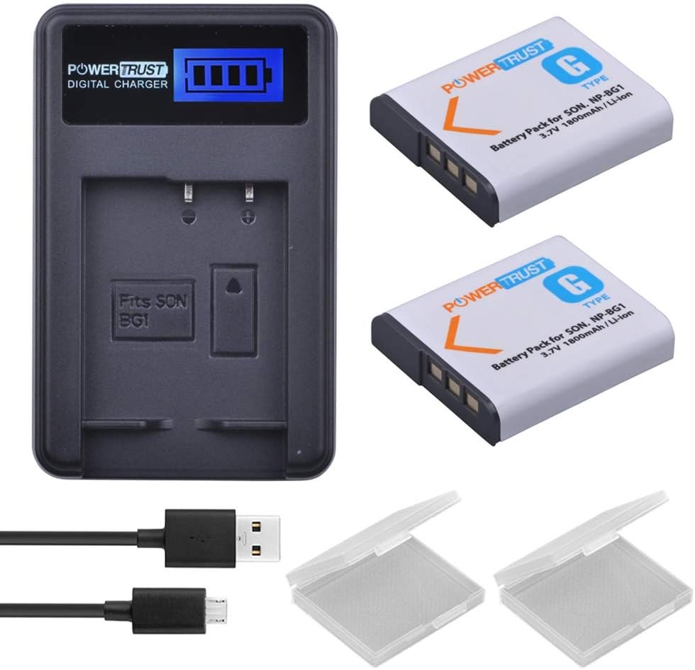 2 Pack NP-BG1 NP-FG1 BG1 Camera Battery and LCD USB Charger for Sony DSC W130 W210 W220 W300 H10 H50 H70 W290 HX7 HX10 HX30 WX10 H55 HX9 T20