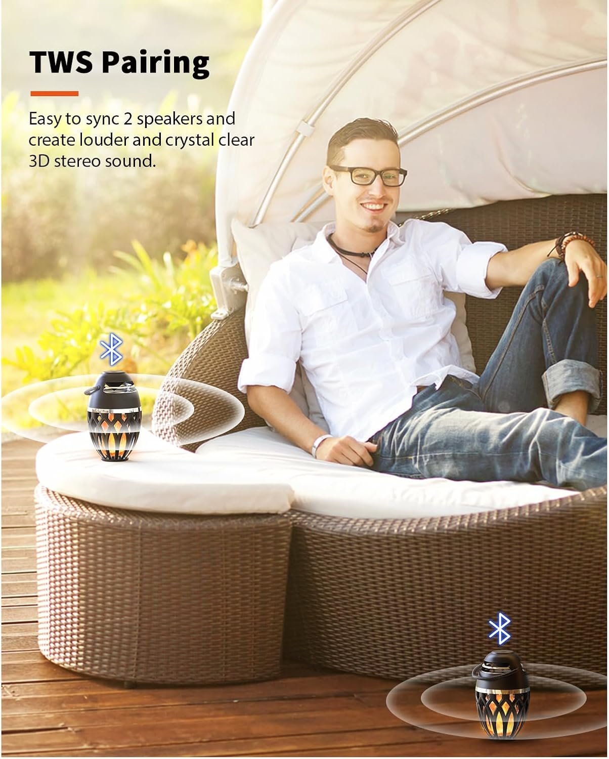 2 Pack Outdoor Bluetooth Speakers,Wireless Speaker with LED Flame Speaker BT 5.0,Waterproof Torch Lantern for Patio Pool Party,Gifts for Women Men
