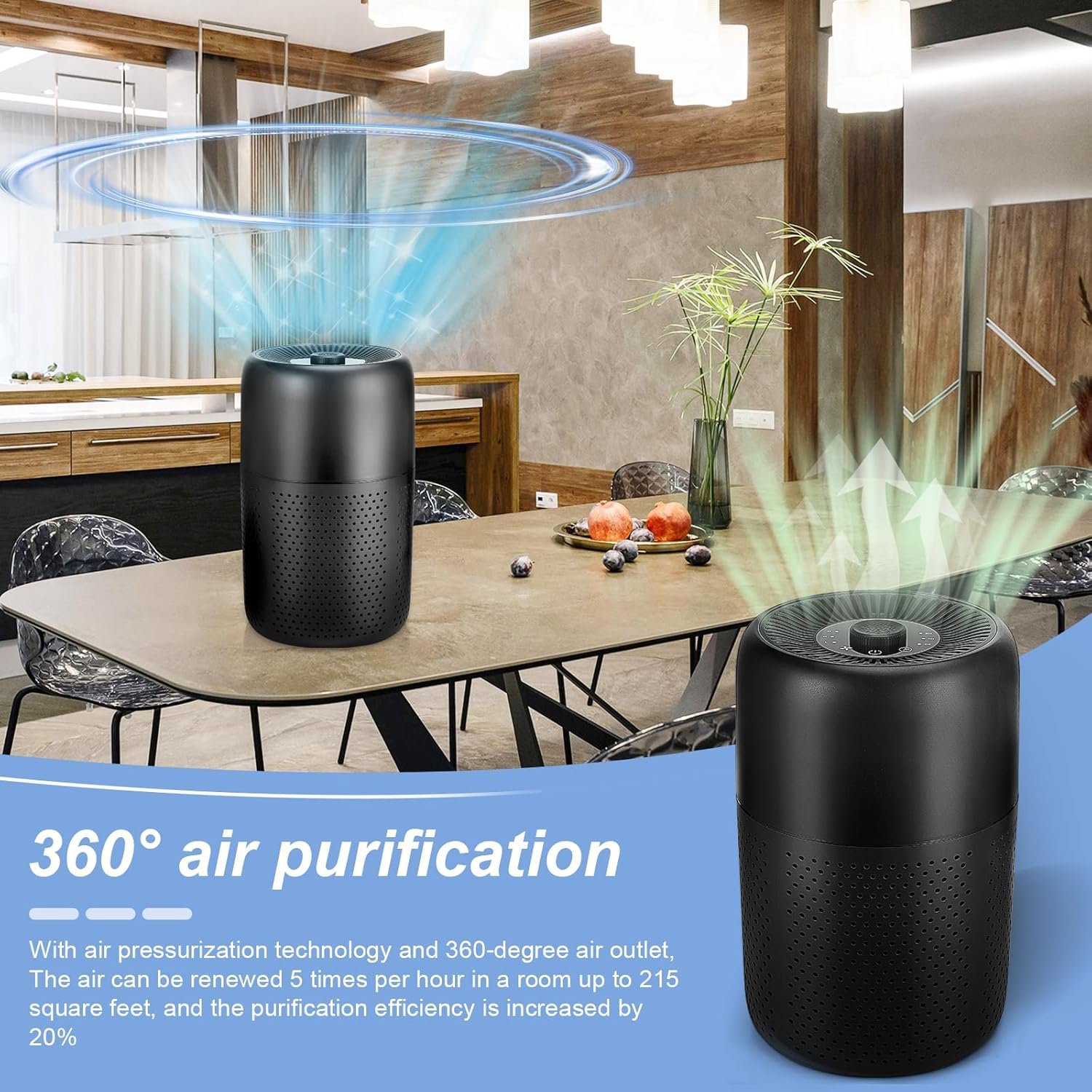 High Circulation Rate: TPLMB air purifier adopts 360-degree air intake technology and dual pressurized air ducts, which can freshen the air for a room up to 215 square feet/20 square meters per hour, cover every corner of the room, and promote your health.