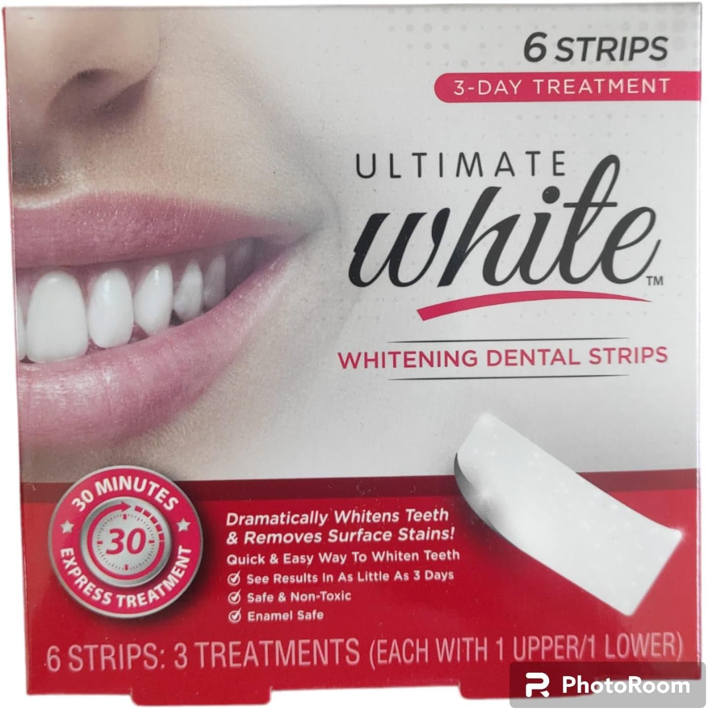 2 Pack Ultimate White Teeth Whitening Dental Strip Oral Care, Beauty & Personal Care, Self Care Kit, Teeth Stain Remover, Teeth Whitener, 12 Pieces, Red