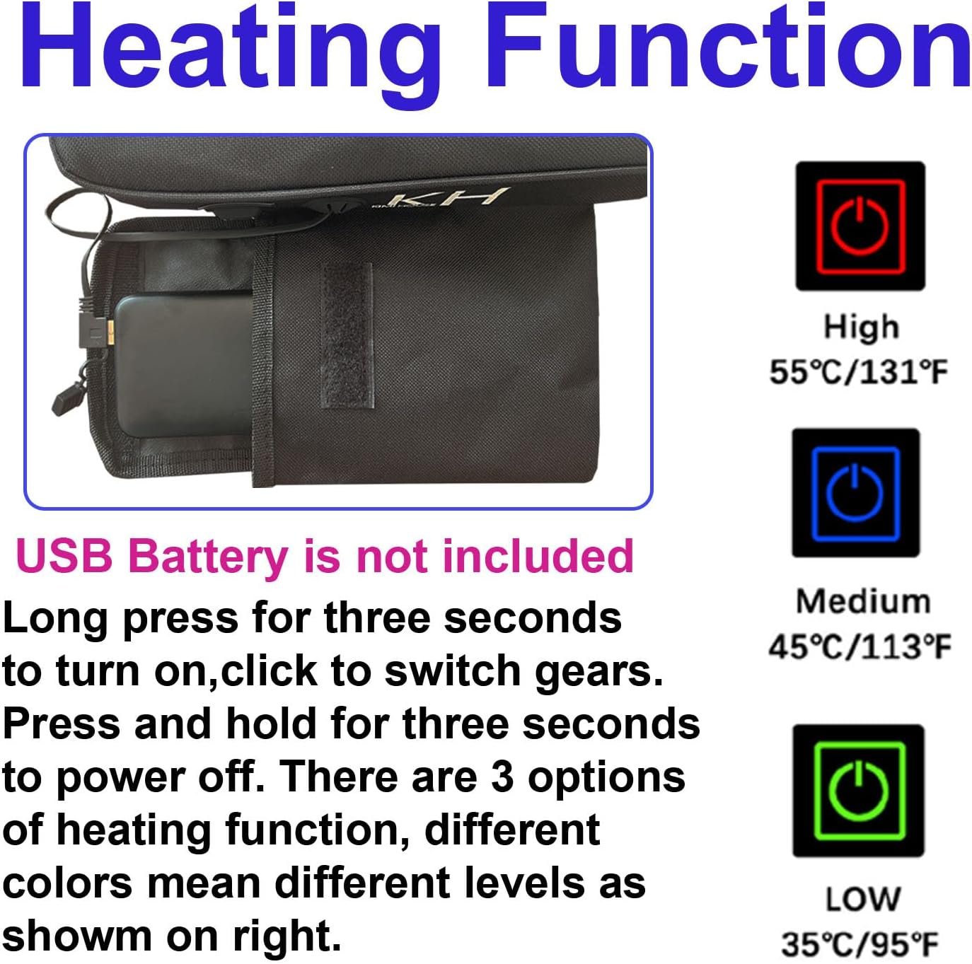 Warm and Comfortable: the cushions can be heated to 115 degrees Fahrenheit . Just contact the seat to the USB power banks (Not Included), and push the button, you will have a warm and comfortable seat. It can’t be used in car.