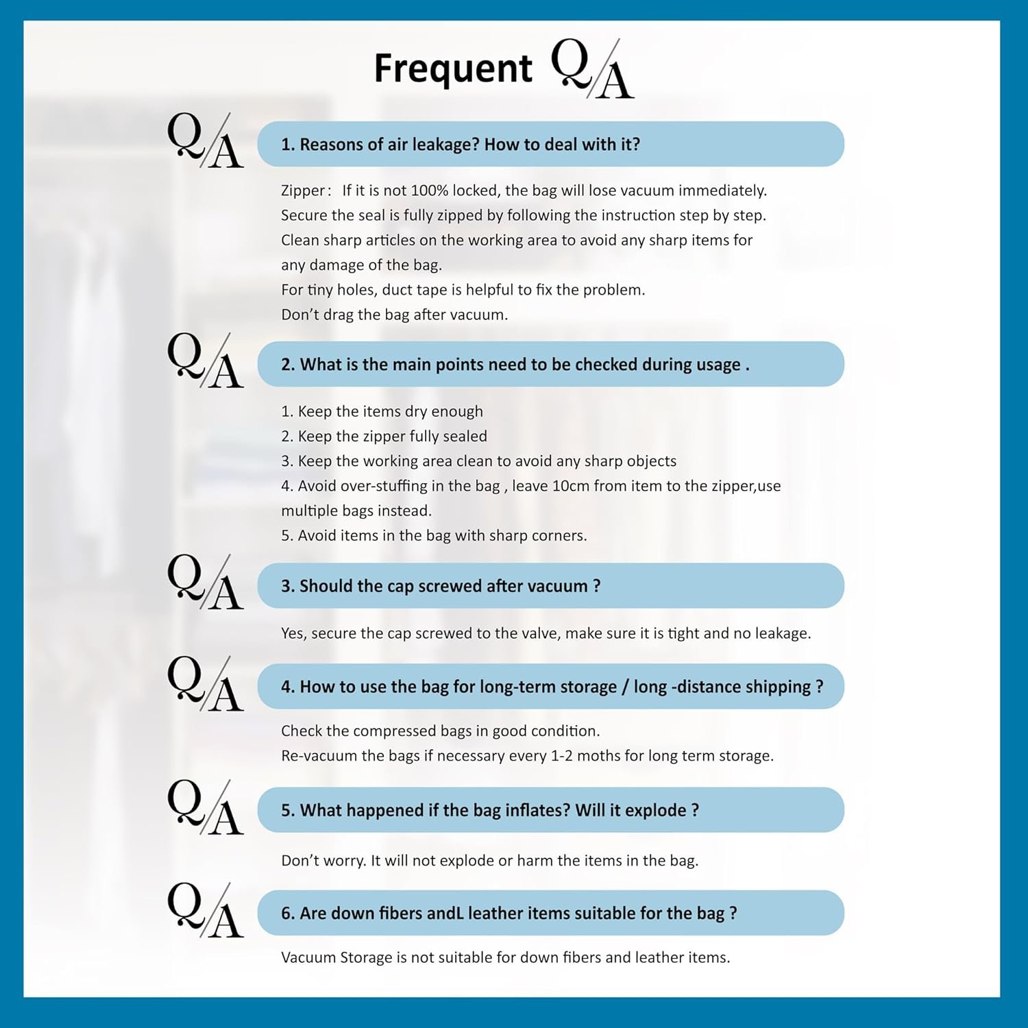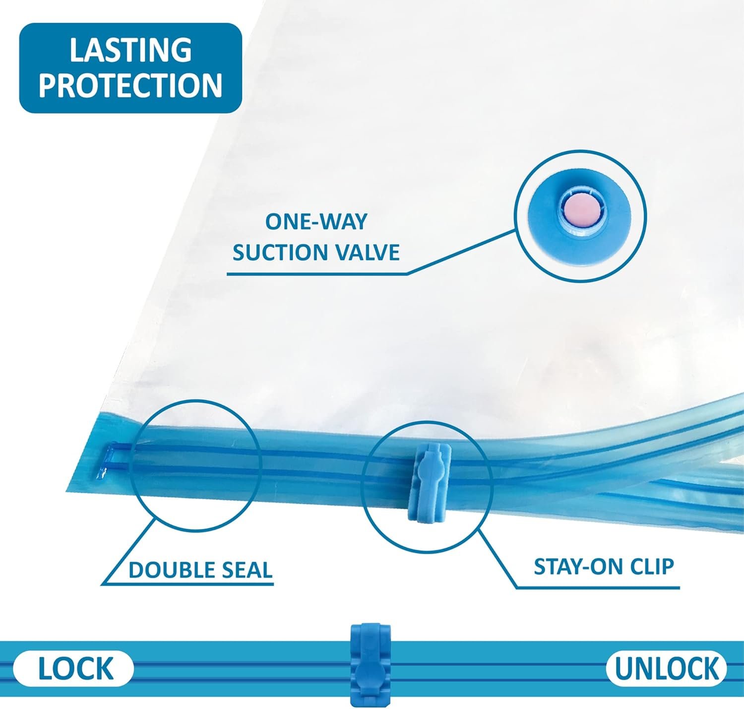 Reliable protection: With the triple-seal turbo valve & double-zip seal design, our vacuum bags get the air out in the suction process. Can be used repeatedly.