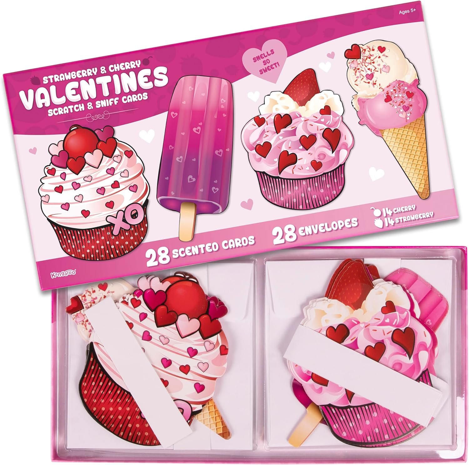 28-Pack Strawberry & Cherry Valentines Day Cards with Envelopes I Scratch & Sniff Valentine’s Day Greeting Cards Party Favor Set I Valentines Day Gifts for Kids