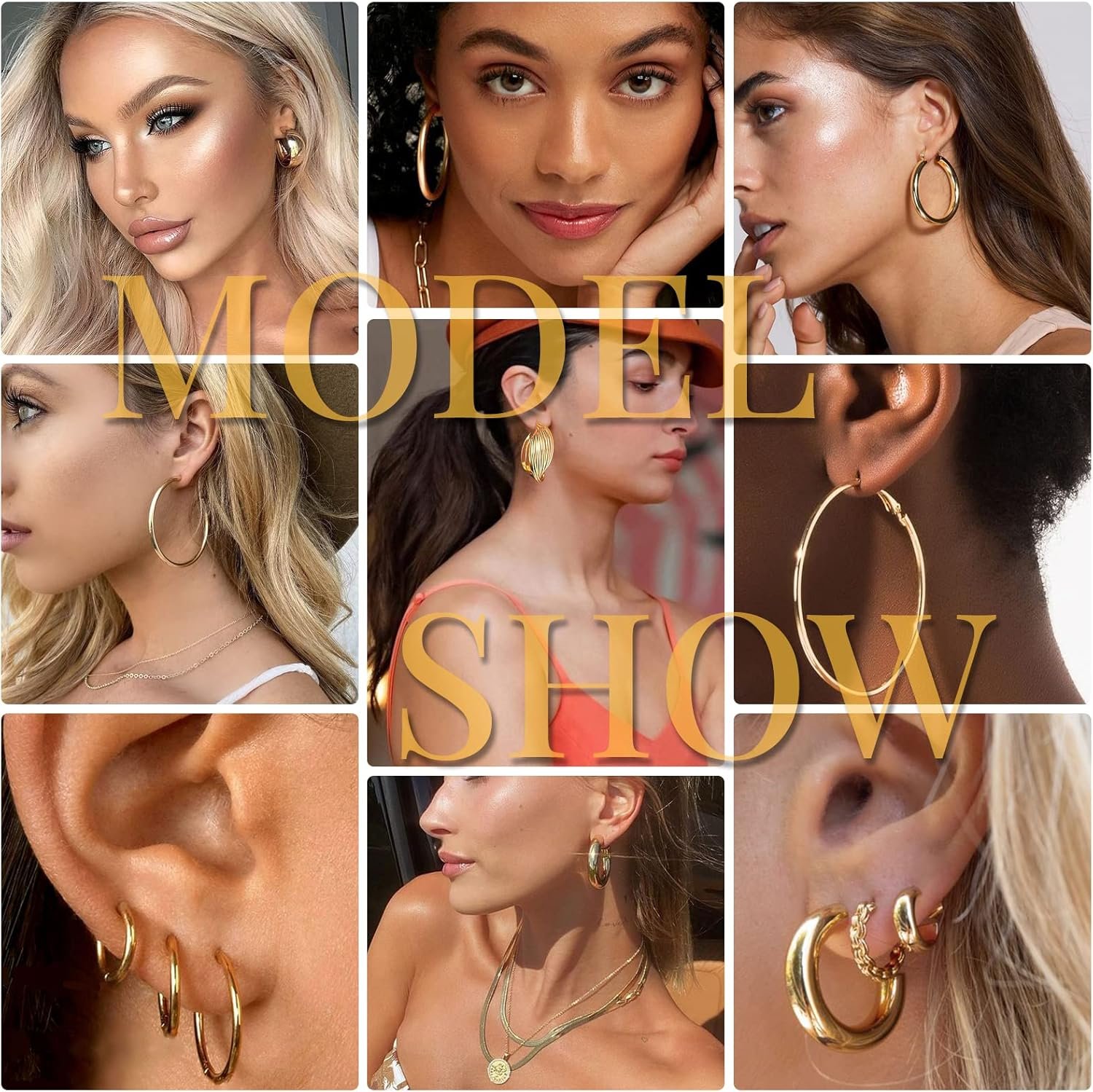 【Multiple Sizes】Get the perfect mix of sizes with our gold hoop earring set. Our gold earrings feature a classic and chic design, giving you the option to choose the perfect size to match your mood and outfit. This allows you to create a unique and exciting look every day.