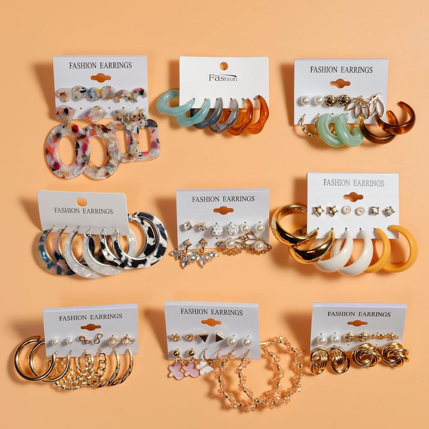 This great value set contains 45 pairs of earrings in different styles and colors, each one is super cute and perfect for everyday wear. You can find almost all types of earrings in this bag, such as gold earrings, acrylic hoop, chain link earrings, pearl studs etc. Make you more attractive every day.