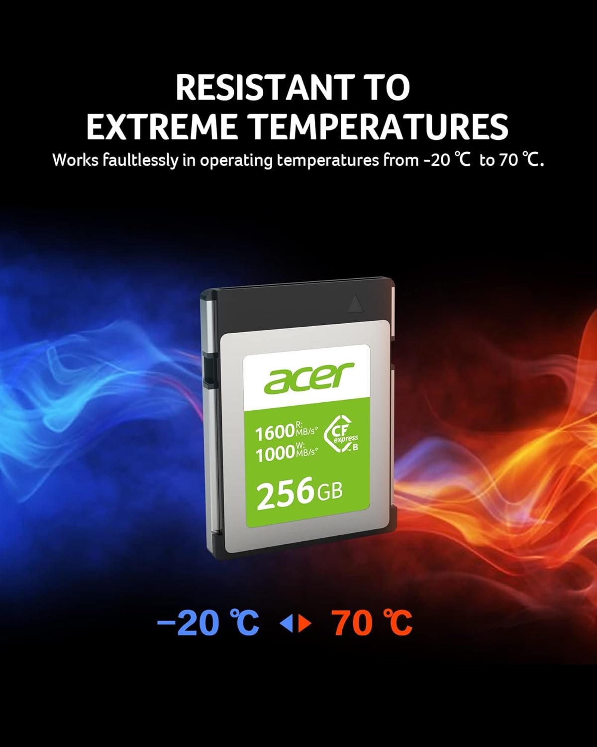 Support 8K Video: With up to 1200 MB/s write speed, Acer CFE100 captures 8 K ultra-high video with sustainable, low-latency performance in your video recording. Ability to reveal more nuances and details.