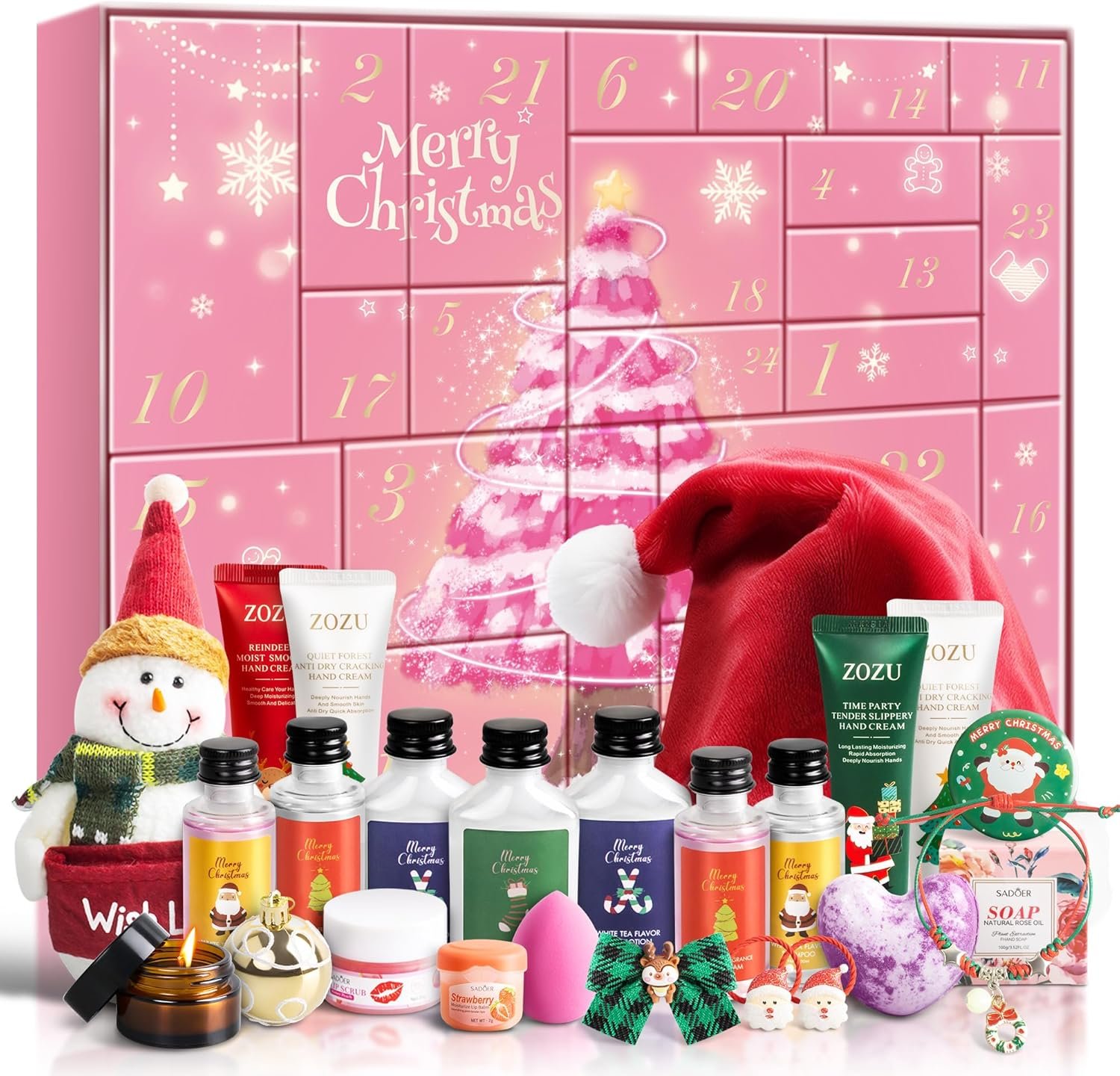 Advent Calendar 2024, 24PCS Holiday Beauty Advent Calendar, Spa Gift Set, Bath & Body Care, 24 Days of Countdown Calendar-Limited Edition Christmas Gifts Skincare Sets for Teen Girls and Women Gift (Pink)