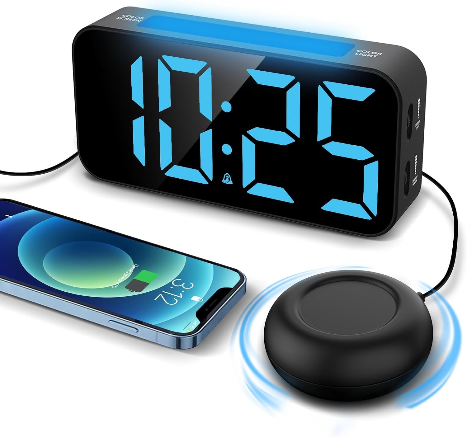 Alarm Clocks for Heavy Sleepers, Vibrating Alarm Clock with Bed Shaker, Night Light, Large Display, Dimmable Loud Clock for Adults Hearing Impaired Deaf Seniors Teens