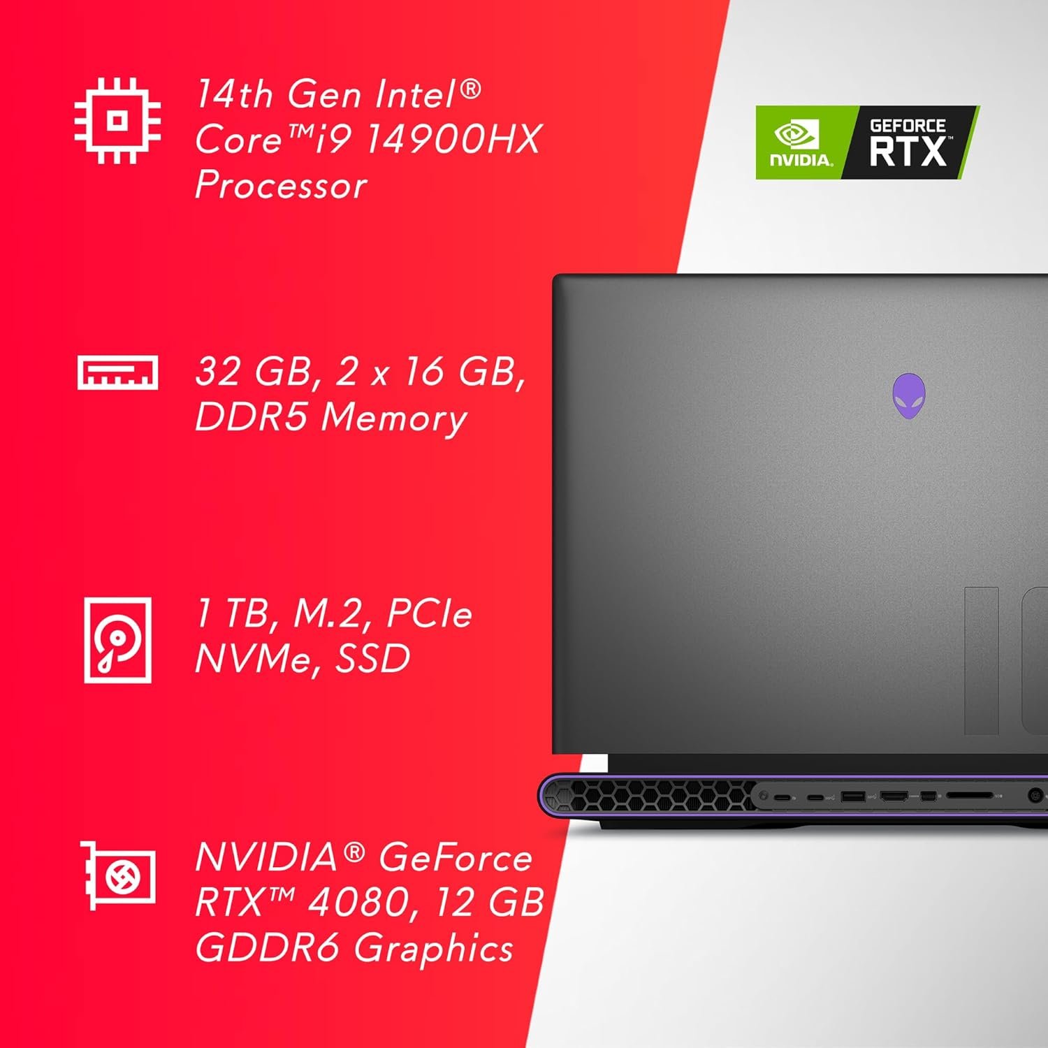 MORE POWER. GREATER THRILLS. Play like a boss with a high-powered, 18-inch laptop that features advanced cooling technology, 14th Generation Intel Core i9 14900HX processor and NVIDIA GeForce RTX 4080 12GB GDDR6 graphics.
