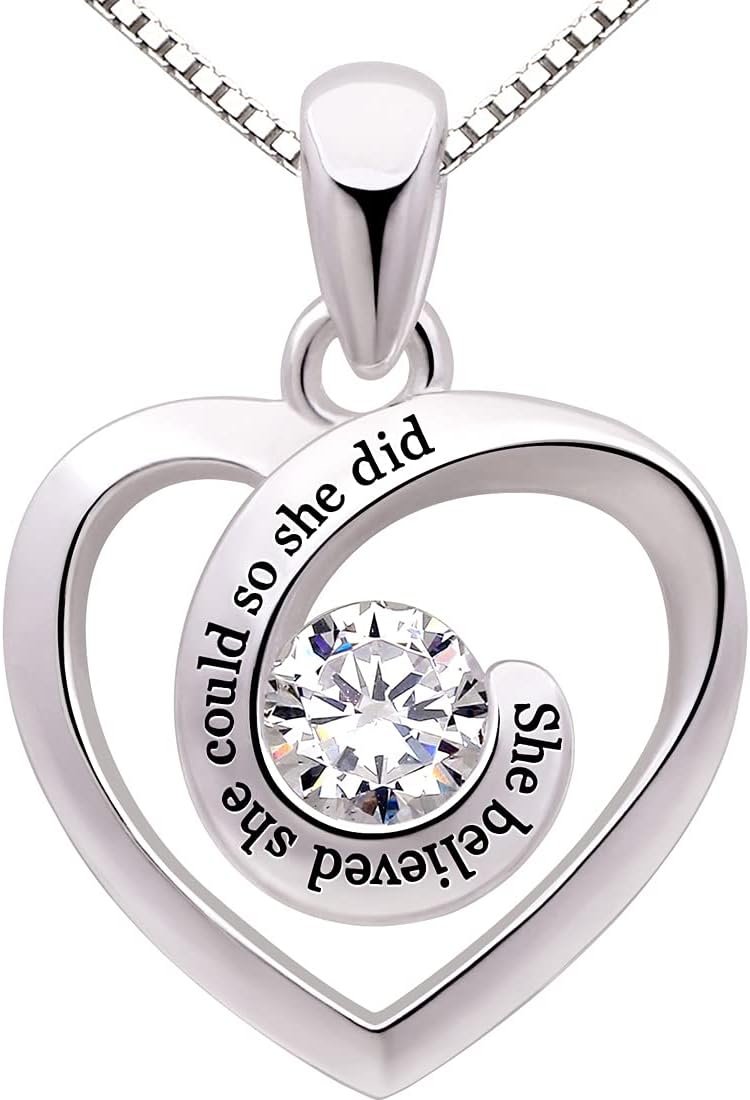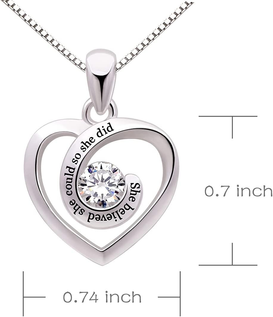 ALOV Jewelry Sterling Silver She believed she could so she did Love Heart Cubic Zirconia Pendant Necklace