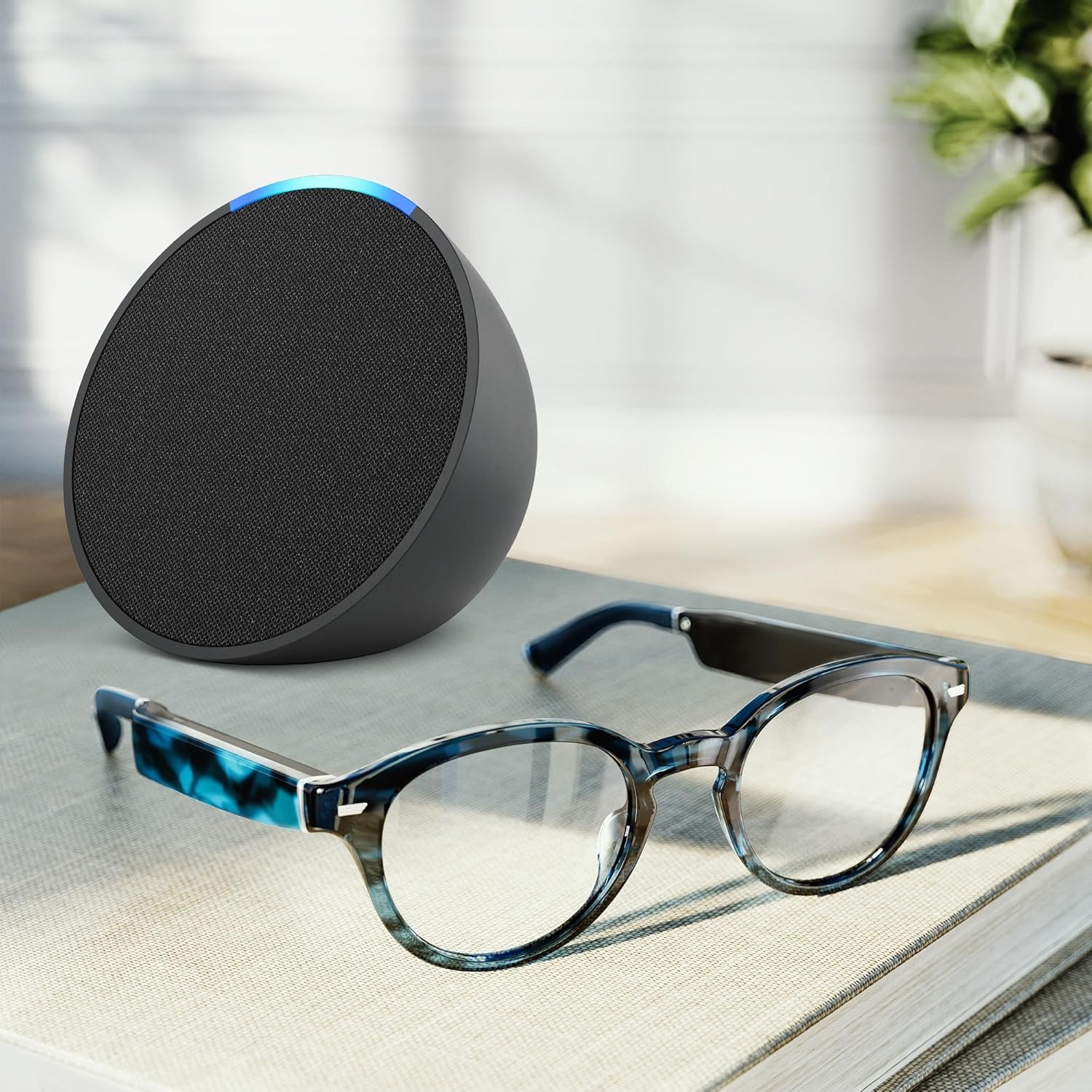 Amazon Echo Frames (3rd Gen) + Echo Pop | Smart glasses with Alexa | Round frames in Blue Tortoise with prescription ready lenses