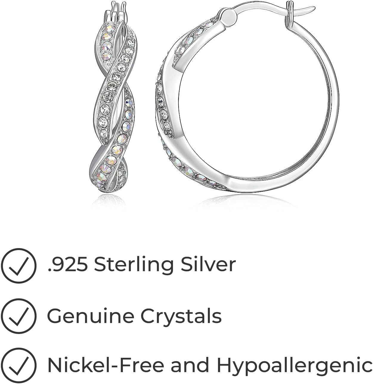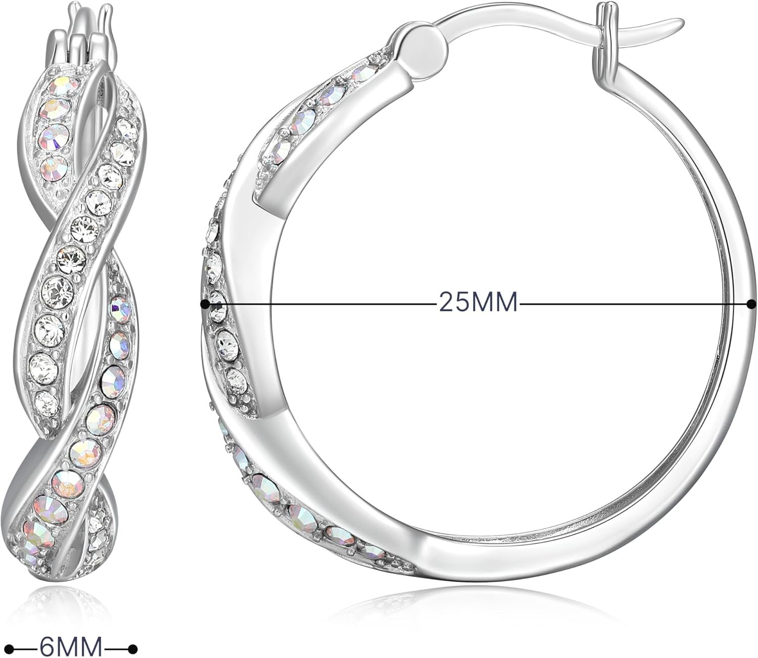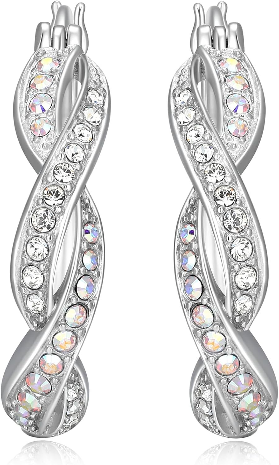 Amazon Essentials .925 Sterling Silver Rhodium Plated Crystal Twisted Hoop Earrings for Women, Hypoallergenic Nickel-Free, Lightweight Hoops with Click Post Closure